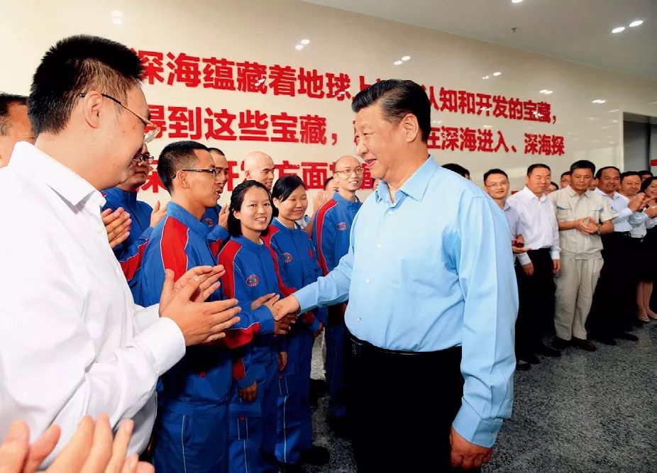 ▲ 4月12日,習(xí)近平總書記在位于三亞的中國科學(xué)院深海科學(xué)與工程研究所,同“深海勇士”號載人潛水器設(shè)計師和深潛團隊親切交談 李學(xué)仁攝