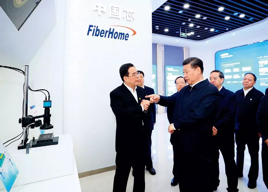 ▲ 4月26日上午,習(xí)近平總書記在位于武漢東湖高新區(qū)的烽火科技集團考察企業(yè)創(chuàng)新發(fā)展情況 謝環(huán)馳攝