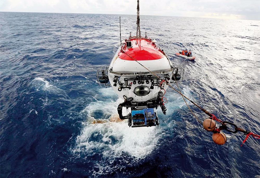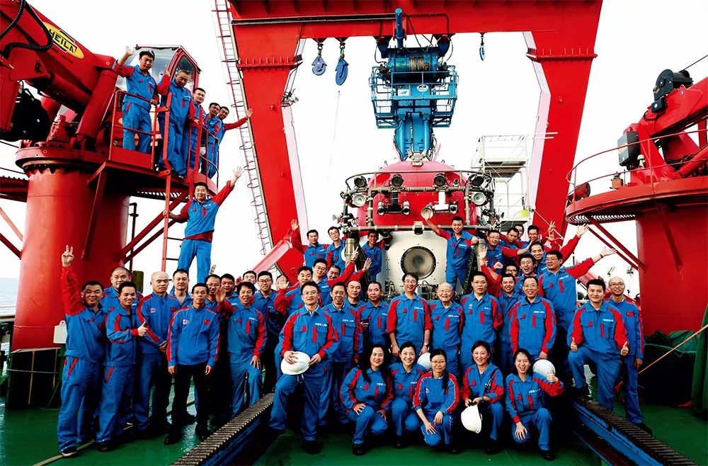 ▲ 5月23日,“南海深部計劃”西沙深潛航次的部分考察隊員在“深海勇士”號前合影 張建松攝