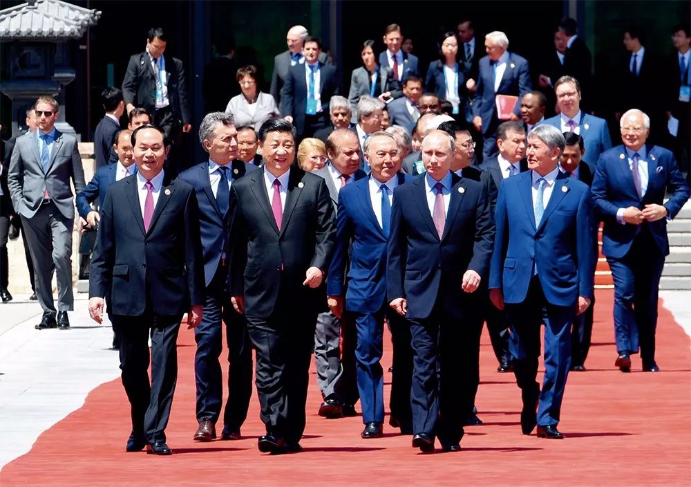 ▲ 2017年5月15日,在北京雁棲湖舉行的“一帶一路”國際合作高峰論壇第一階段會議結(jié)束后,習(xí)近平主席同與會領(lǐng)導(dǎo)人和國際組織負責(zé)人步出雁棲湖國際會議中心 饒愛民攝