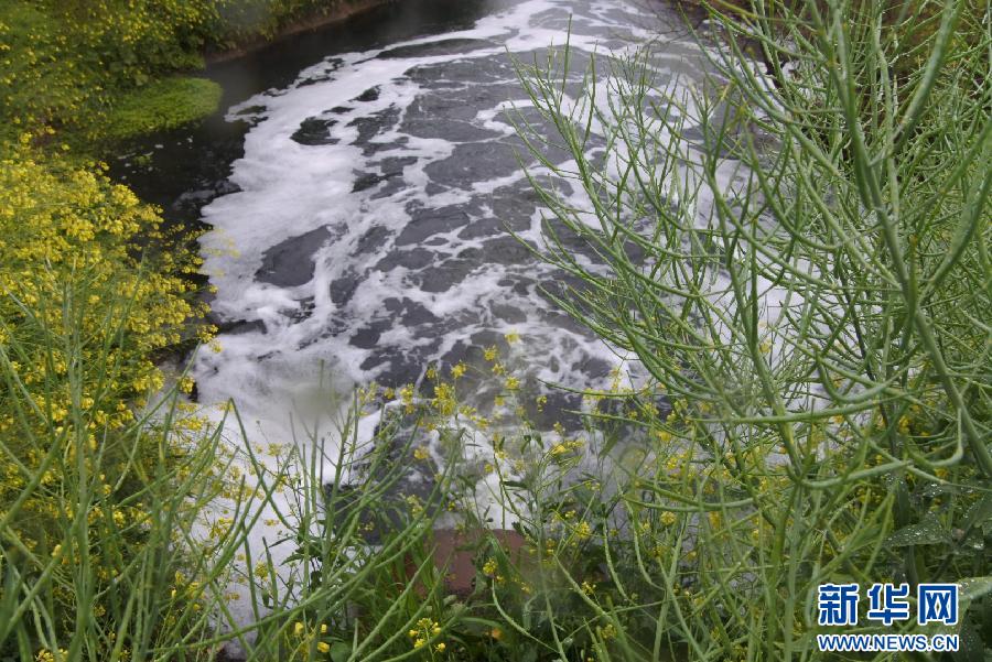 安徽省蕪湖市的一家污水處理廠在源源不斷排放污水,河溝被染成黑色,水面上泛著泡沫和熱氣(4月5日攝)。新華社記者董雪攝
