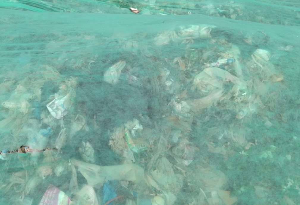 圖5:三善堂臨時(shí)垃圾堆場綠化膜下的垃圾清晰可見