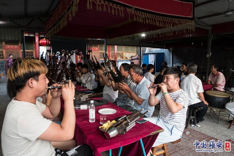 每年農(nóng)歷四月十九、二十、二十一,雄安新區(qū)安新縣圈頭村,男女老少都會(huì)聚集在村里的藥王廟,音樂(lè)會(huì)的傳人們演奏起各式傳統(tǒng)曲目,以此來(lái)祭祀藥王,感念千百年來(lái)對(duì)當(dāng)?shù)卮迕竦挠幼o(hù)。
