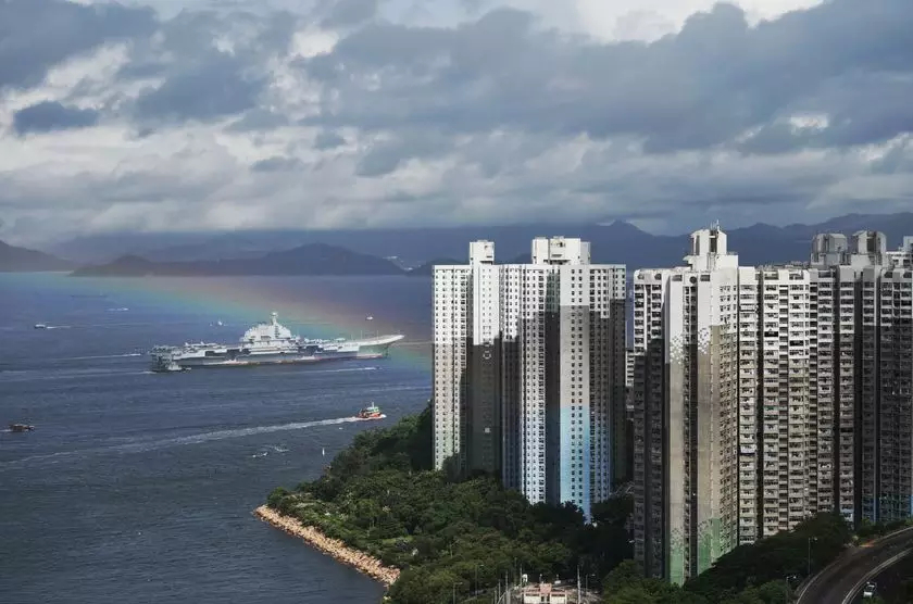 2017年7月7日,海軍遼寧艦在香港南丫島附近航行。當日,正在執(zhí)行跨區(qū)機動訓練任務的中國人民解放軍海軍航母編隊抵達香港,參加香港回歸祖國暨中國人民解放軍進駐香港20周年慶?;顒?,受到香港特區(qū)政府和民眾熱烈歡迎。 新華社發(fā)(王申攝)