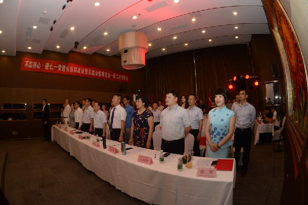 北京支持雄安產(chǎn)業(yè)發(fā)展促進(jìn)會(huì)30日下午在京舉行“不忘初心 迎七一”黨建引領(lǐng)精準(zhǔn)扶貧交流會(huì),與會(huì)人員起立唱國(guó)歌。