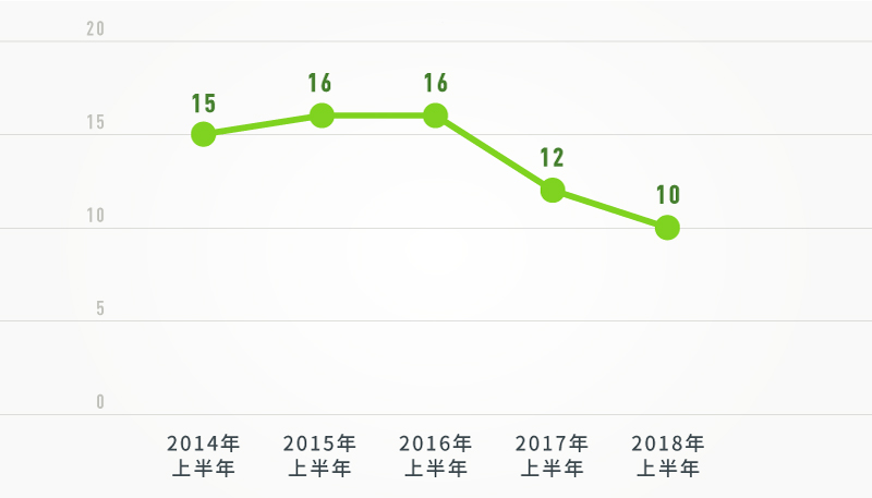 2015年以來,上半年廳局級(jí)干部落馬數(shù)量走勢(shì)圖