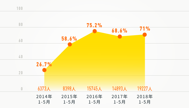 2014年以來,1-5月給予黨紀(jì)政務(wù)處分人數(shù)及其占處理人數(shù)比例走勢(shì)圖