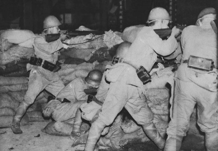 中國守軍第29軍在盧溝橋上奮起抵抗