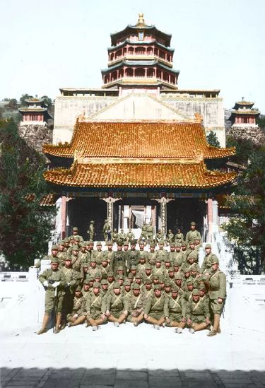 日軍在北平頤和園佛香閣留影(數(shù)字彩色復(fù)原技術(shù))