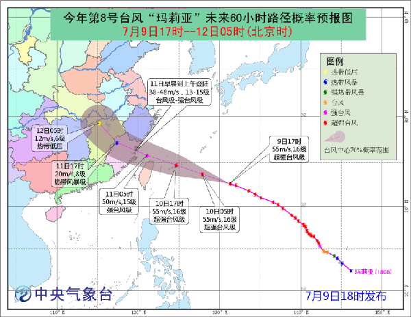 張玲:“瑪莉亞”影響最為嚴(yán)重的時(shí)段為10至11日。10日開始,臺(tái)灣以東洋面、東海南部以及臺(tái)灣海峽北部的風(fēng)力會(huì)逐漸加大到10-12級(jí),臺(tái)風(fēng)中心經(jīng)過的附近海域和地區(qū)的風(fēng)力可達(dá)13-15級(jí)。此外,10日夜間至11日,包括臺(tái)灣、福建、浙江東南部以及江西等地將會(huì)出現(xiàn)大到暴雨,部分地區(qū)會(huì)出現(xiàn)大暴雨到特大暴雨。由于降水強(qiáng)度強(qiáng),需要防范降水帶來的城市內(nèi)澇、滑坡、泥石流等次生災(zāi)害影響。由于臺(tái)風(fēng)強(qiáng)度比較強(qiáng),沿海風(fēng)力大,目前正值暑期時(shí)段,在沿海地區(qū)旅游的公眾和相關(guān)部門也要做好應(yīng)急預(yù)案;相關(guān)水域水上作業(yè)和過往的船舶應(yīng)當(dāng)回港避風(fēng),加固港口設(shè)施,防止船舶走錨、擱淺和碰撞。