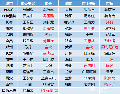 14個(gè)省會(huì)城市調(diào)整書記市長 兩個(gè)“一把手”職務(wù)空缺待補(bǔ)