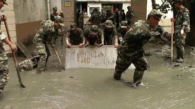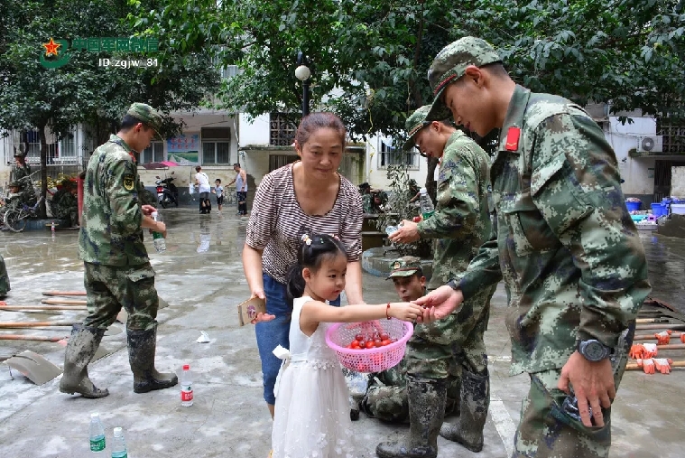 群眾自發(fā)為救災(zāi)官兵送西瓜。劉學(xué)功 攝
