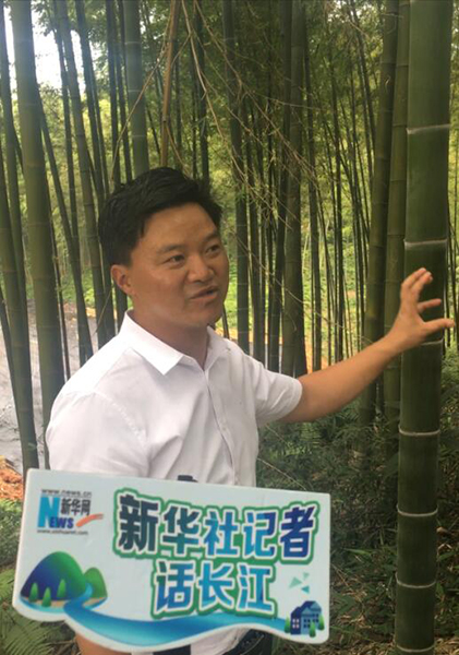 宜賓市長(zhǎng)寧縣竹海鎮(zhèn)農(nóng)林村村主任郭林在給記者講述楠竹生長(zhǎng)故事。