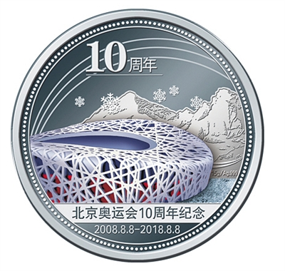 規(guī)格為直徑40毫米。采用獨特造幣彩印工藝精細呈現(xiàn)了兩屆奧運會開幕式場館鳥巢的倩影。