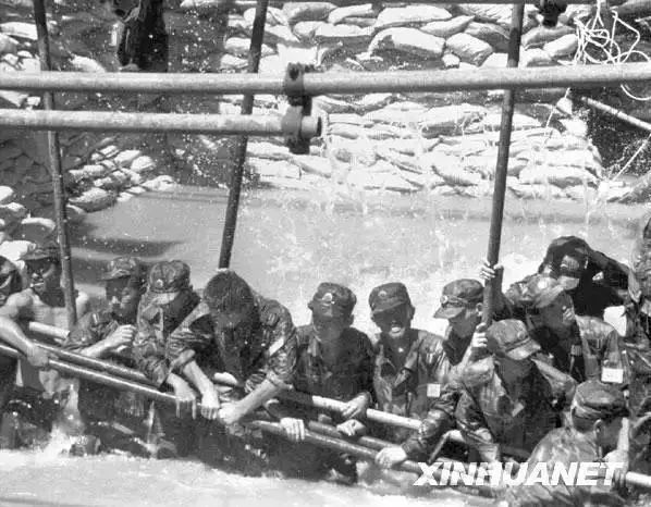 解放軍戰(zhàn)士用身體搭“人橋”