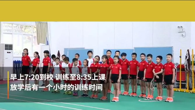 “上午7點半到8點半,下午4點半到5點20分,回家做完作業(yè)還要做俯臥撐和仰臥起坐?!苯鹋频谋澈螅敲刻煲?guī)律的訓練。