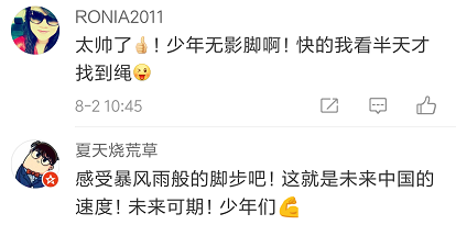 網(wǎng)友們紛紛留言:“太快了!計數(shù)都來不及!”“少年強則中國強!”
