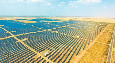 庫布其沙漠生態(tài)太陽能發(fā)電綜合示范地。虞東升攝(新華社發(fā))