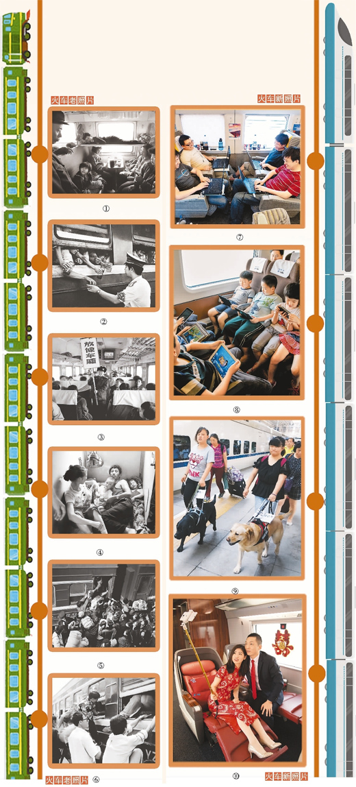 從綠皮車(chē)到紅皮車(chē),從藍(lán)皮車(chē)到白皮車(chē),再?gòu)摹昂椭C號(hào)”到“復(fù)興號(hào)”,火車(chē)與鐵路一直在變,火車(chē)上的中國(guó)人亦步履不停。時(shí)代更迭,而跨越時(shí)空保持不變的,是由火車(chē)承載著的奔向偉大目標(biāo)的旺盛活力???,那出發(fā)的信號(hào)燈再次亮起,人們與祖國(guó)永遠(yuǎn)行駛在奮進(jìn)的道路之上?。▏?yán) 冰 袁苗苗 高明靜)