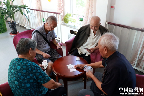 社區(qū)內(nèi)的老人們正在進(jìn)行棋牌游戲。(中國(guó)臺(tái)灣網(wǎng) 尹賽楠 攝)