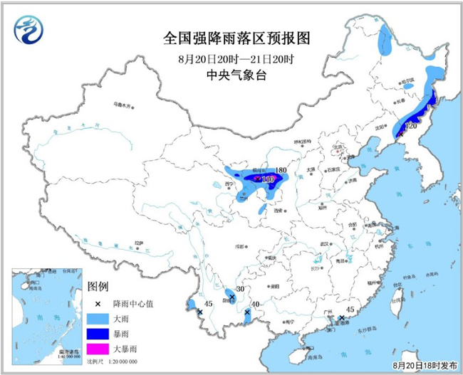 孫軍:西北地區(qū)由于受高空槽和低層切變影響,西北地區(qū)西側(cè)、北側(cè)冷空氣與南側(cè)的濕暖氣流交匯,形成西北渦旋。由于冷暖氣流兩者強(qiáng)度均較強(qiáng),水汽輸送條件較好,預(yù)計(jì)8月20日夜間至21日夜間,西北地區(qū)中東部將有一次強(qiáng)降雨過程,其中甘肅中東部、寧夏、陜西、內(nèi)蒙古河套偏南部分地區(qū)有大雨或暴雨,局地有大暴雨。