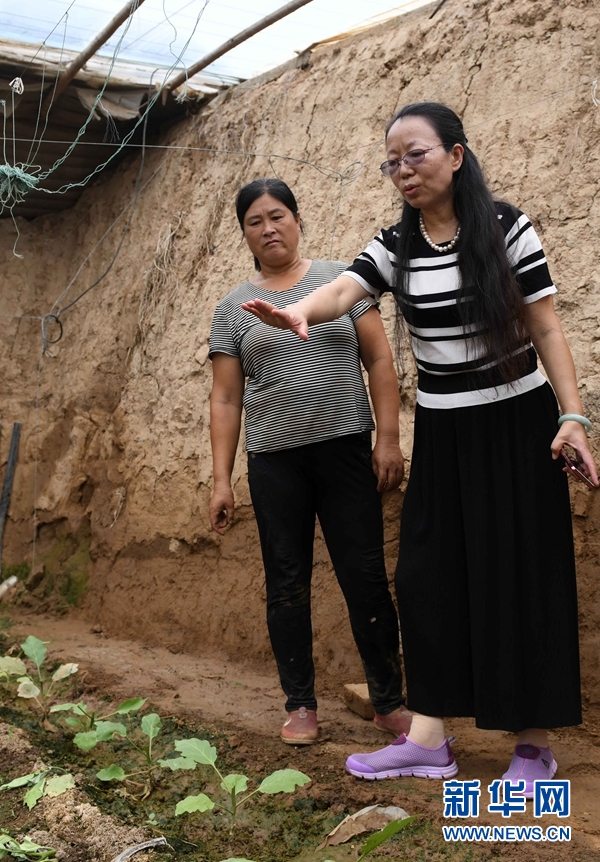 8月30日,中國農(nóng)業(yè)大學(xué)教授高紅麗(右)在紀(jì)臺鎮(zhèn)前老莊村指導(dǎo)種植戶趙秀蓮做好田間管理。 新華社記者 朱崢 攝