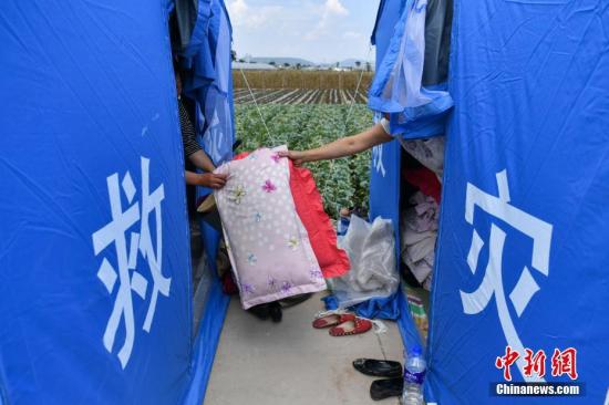 資料圖:民眾在救災(zāi)帳篷內(nèi)搭建臨時(shí)床鋪。 中新社記者 任東 攝