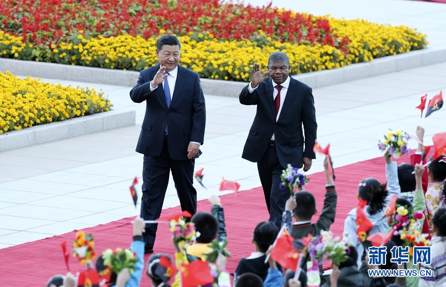 10月9日,國(guó)家主席習(xí)近平在北京人民大會(huì)堂同安哥拉總統(tǒng)洛倫索舉行會(huì)談。這是會(huì)談前,習(xí)近平在人民大會(huì)堂東門外廣場(chǎng)為洛倫索舉行歡迎儀式。 新華社記者劉衛(wèi)兵攝