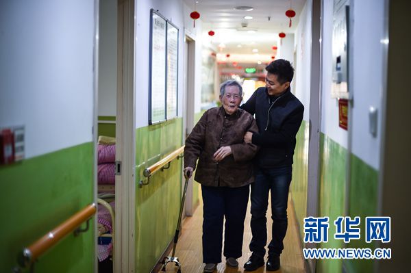 武漢市武昌區(qū)一家民辦養(yǎng)老院的工作人員在照顧老人(2015年1月22日攝)。新華社記者肖藝九攝