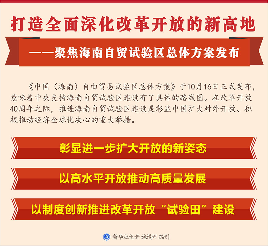 新華社北京10月16日電? 題:打造全面深化改革開放的新高地——聚焦海南自貿(mào)試驗區(qū)總體方案發(fā)布