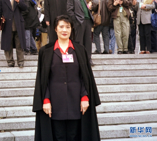 剛擔任全國政協(xié)委員的黃紫玉在北京人民大會堂前拍照(受訪者供圖)。 新華社發(fā)
