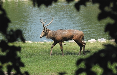 大興參選的冬奧吉祥物以大興區(qū)南海子麋鹿苑自然保護區(qū)內的散養(yǎng)麋鹿為原型。新京報記者 吳江 攝