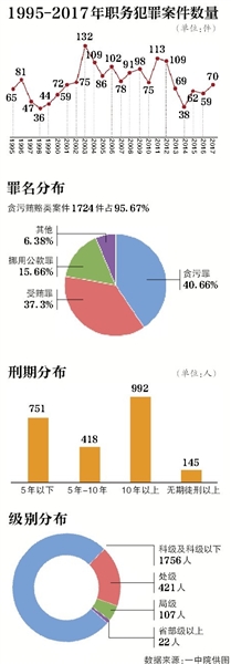 昨天上午,北京一中院發(fā)布《1995年-2018年職務(wù)犯罪白皮書》(以下簡(jiǎn)稱白皮書)。作為承擔(dān)了北京近四成的職務(wù)犯罪審判任務(wù)的法院,23年來,一中院通過審理的1800余件職務(wù)犯罪案件,總結(jié)出了該類案件的主要特征和發(fā)展趨勢(shì)。近年來,職務(wù)犯罪中“小官”犯罪占比較高、犯罪行為時(shí)間跨度平均為7年,“初犯”低齡化職務(wù)犯罪特征初顯等。