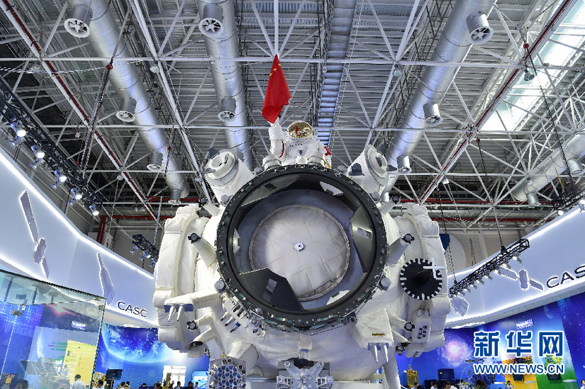 ??? 這是展出的空間站核心艙實(shí)物(工藝驗(yàn)證艙)(11月5日攝)。 11月6日,在廣東珠海舉辦的第十二屆中國(guó)國(guó)際航空航天博覽會(huì)上,中國(guó)空間站“天和”號(hào)核心艙揭開(kāi)神秘面紗,公開(kāi)亮相。 新華社記者梁旭攝