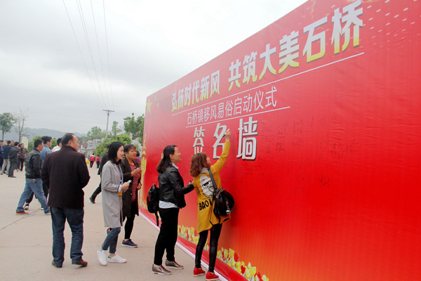 四川瀘縣石橋鎮(zhèn)舉辦移風(fēng)易俗活動,群眾在簽名墻上簽名承諾。(四川省瀘縣紀(jì)委監(jiān)委 吳威 供圖)