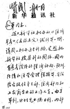 80年代初,改革的東風讓經(jīng)濟建設的熱潮,一浪高過一浪,新華社想辦一份綜合性經(jīng)濟報紙,時任新華社國內(nèi)部副主任的李峰建議,報紙采用“經(jīng)濟參考”作為報名,第一可以有些“神秘”色彩,第二說話可以放開一些。新華社黨組采納了他的意見。