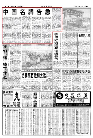 《經(jīng)濟參考報》記者走訪發(fā)現(xiàn),中國名牌告急,由多方面原因造成:“洋”牌子淹了國產(chǎn)貨,假“名牌”砸了真名牌。
