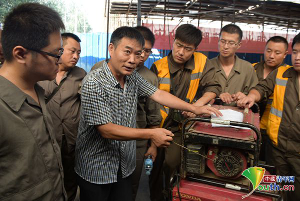 張立昌演示新型軌廓道尺與普通道尺使用區(qū)別。中國青年網(wǎng)記者 李川 攝