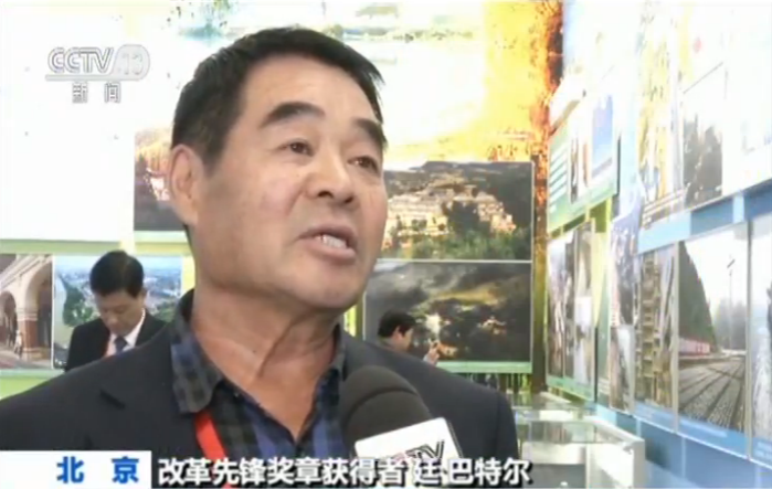 改革先鋒獎?wù)芦@得者 廷·巴特爾:我們國家這40年,黨中央指引的路子很正確。習(xí)總書記講,綠水青山就是金山銀山,在十八大以后,近幾年在治理草原生態(tài),恢復(fù)草場,讓牧民收入逐漸增收,現(xiàn)在我們一個村整體脫貧了。