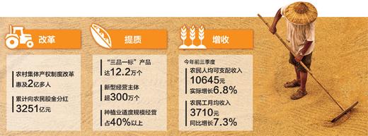 這一年,以農(nóng)業(yè)供給側(cè)結(jié)構(gòu)性改革為主線,由增產(chǎn)導(dǎo)向轉(zhuǎn)變?yōu)樘豳|(zhì)導(dǎo)向,質(zhì)量興農(nóng)、綠色興農(nóng)、品牌強(qiáng)農(nóng)正成為農(nóng)業(yè)發(fā)展的主旋律。這一年,深化戶籍制度改革,推進(jìn)異地就醫(yī)結(jié)算,農(nóng)民工享受到更多公共服務(wù)。這一年,整治農(nóng)村人居環(huán)境,大病救治范圍擴(kuò)大,農(nóng)村民生持續(xù)改善……