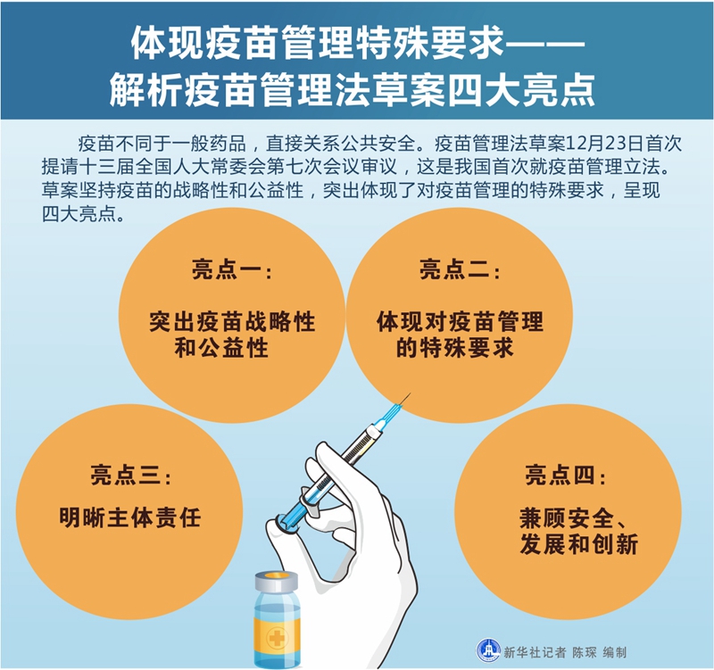 新華社北京12月23日電? 題:體現(xiàn)疫苗管理特殊要求——解析疫苗管理法草案四大亮點