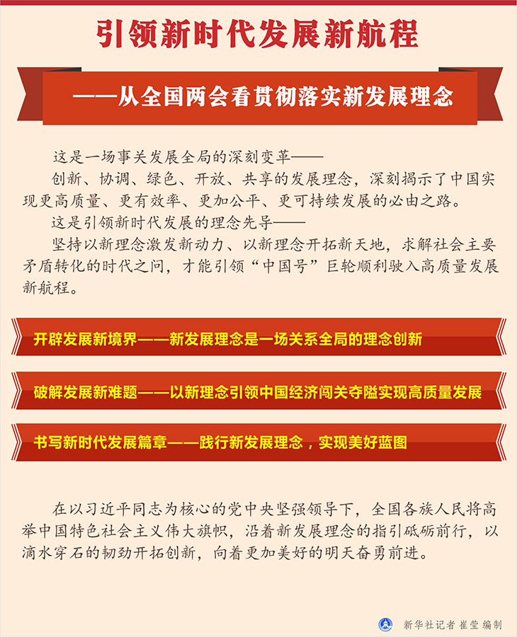 新華社北京3月8日電 題:引領(lǐng)新時(shí)代發(fā)展新航程——從全國兩會(huì)看貫徹落實(shí)新發(fā)展理念