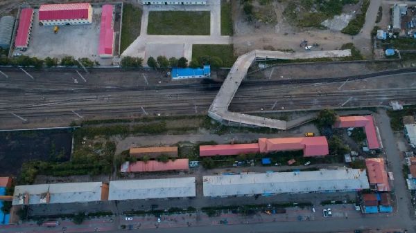 平改立工程K11公里道口航拍圖,可以看到,為了前往殯儀館,通過(guò)道口時(shí)唯一的選擇。(8月28日 航拍圖)達(dá)日罕攝