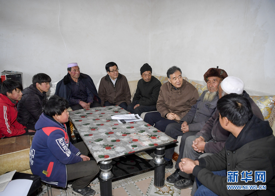 近日,中共中央政治局常委、全國(guó)政協(xié)主席汪洋在甘肅臨夏回族自治州調(diào)研脫貧攻堅(jiān)工作,看望慰問貧困群眾和基層扶貧干部。這是1月13日,汪洋在積石山保安族東鄉(xiāng)族撒拉族自治縣劉集鄉(xiāng)肖家村看望慰問貧困戶。 新華社記者 李學(xué)仁 攝