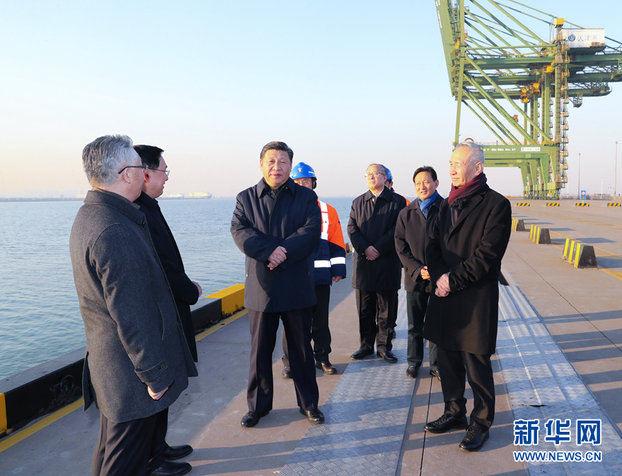1月16日至18日,中共中央總書記、國(guó)家主席、中央軍委主席習(xí)近平在京津冀考察,主持召開京津冀協(xié)同發(fā)展座談會(huì)并發(fā)表重要講話。這是1月17日下午,習(xí)近平在天津港碼頭考察。 新華社記者 鞠鵬 攝