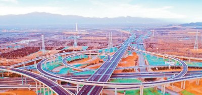 從高空俯瞰京禮高速營城子立交,四通八達(dá)、層層交疊(1月22日攝)。本報(bào)記者 賀勇攝