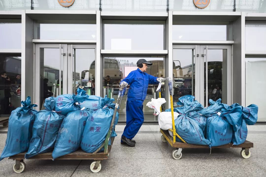 2019-02-01,江蘇省常州市。春運(yùn)大軍中,客運(yùn)站的貨物托運(yùn)工正在托運(yùn)貨物裝車(chē)。只見(jiàn)他驅(qū)動(dòng)兩個(gè)小拖車(chē)同時(shí)行動(dòng),一下子運(yùn)走了十幾個(gè)包裹。作者:全無(wú)敵