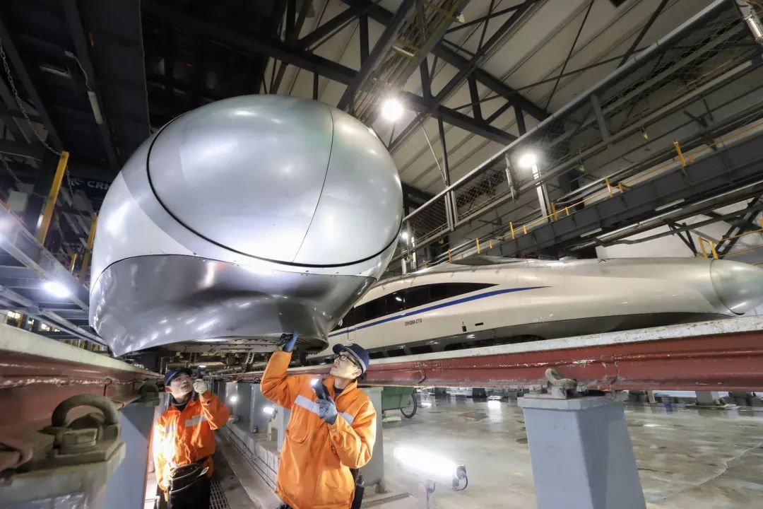 2019-01-19,江西省南昌市。用無(wú)言的堅(jiān)守,護(hù)航歸途——鐵路南昌西動(dòng)車(chē)所機(jī)械師在春運(yùn)期間默默守護(hù)著每一位旅客的歸途。作者:肖堯