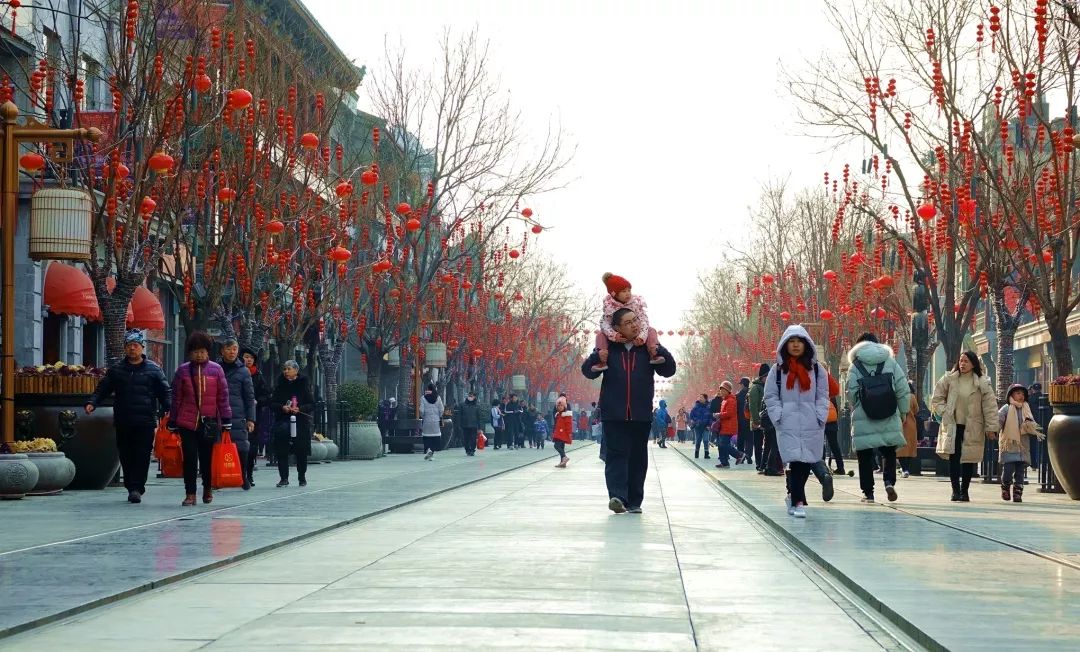 2019-02-02,北京市。迎新春,大柵欄掛起紅燈籠,喜慶的節(jié)日氣氛吸引了八方來客。作者:大龍