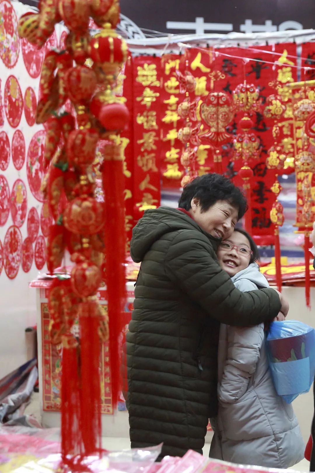 2019-01-27,遼寧省東港市。一位老人熱情地把好久沒見到的孩子摟在懷里。作者:青春